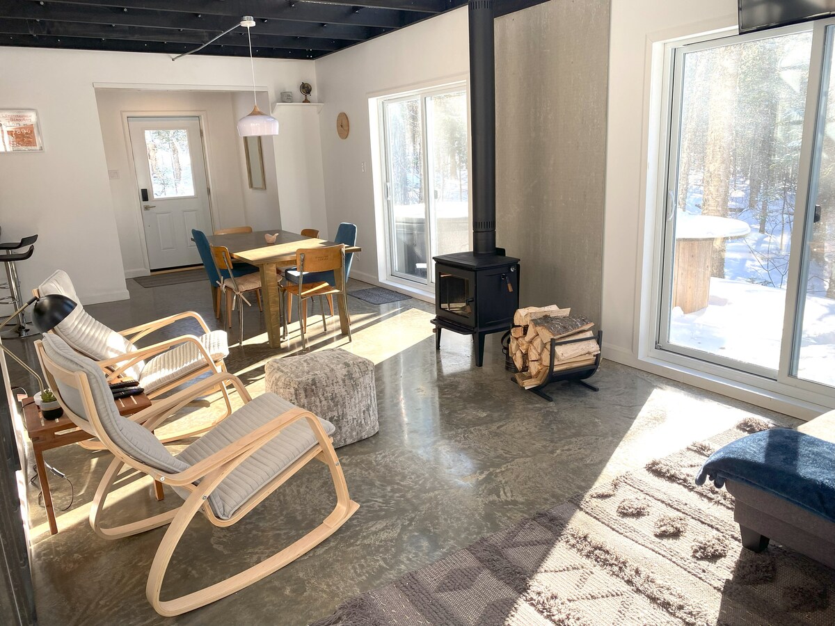 Il rifugio è il luogo ideale per rifugiarsi. Un'oasi di pace immersa nella natura circondata da montagne a perdita d'occhio. Il Rifugio vi offre la libertà di creare un legame autentico con la natura e di godere di momenti di qualità da soli o in compagnia. Appena varcata la soglia, sarete accolti in un'atmosfera calda e confortevole. Ampie finestre offrono una splendida vista sulle montagne circostanti e in lontananza possiamo vedere la punta del Lago Mégantic.
