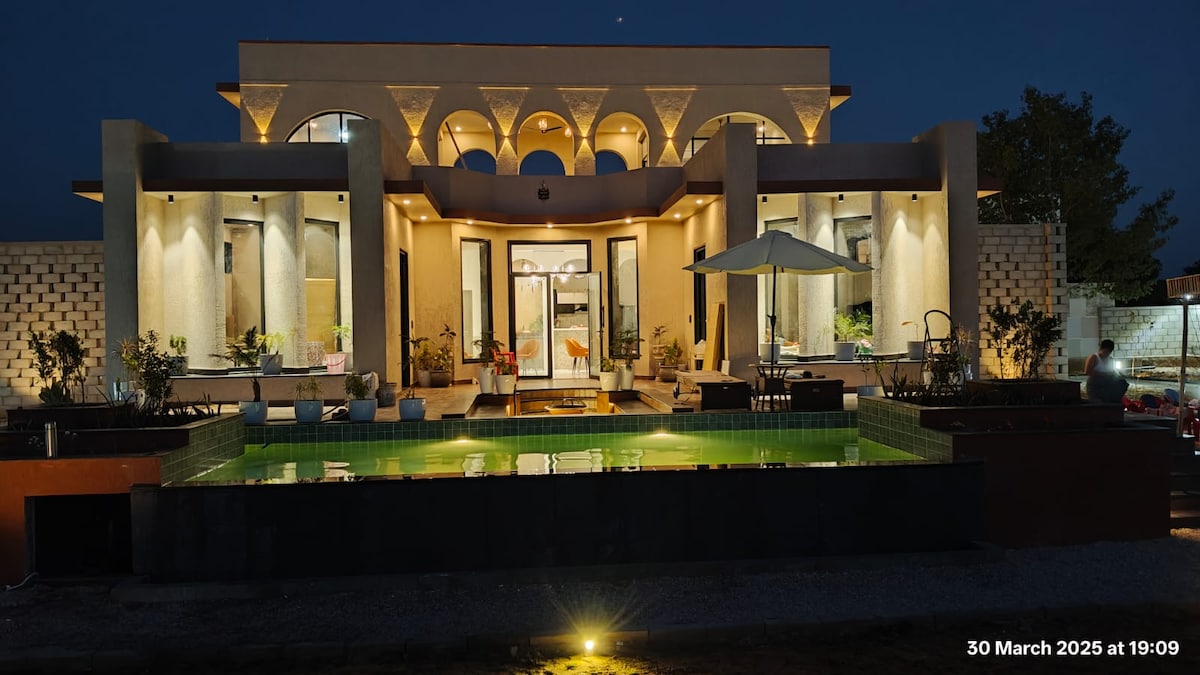 🌿 Luxury 2BHK Farm Stay with Private Pool | Peaceful Getaway Escape to this elegant 2BHK luxury farmhouse surrounded by greenery and tranquility. Perfect for families, couples, or small groups.beautifully designed interiors featuring two cozy bedrooms with premium bedding and attached bathrooms. A fully equipped kitchen lets you prepare your favorite dishes, while the bar corner and cozy lounge offer spaces to unwind and enjoy your stay.Enjoy a refreshing swim in your private pool,
