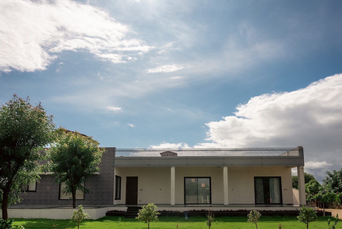 A peaceful 4BHK boutique farm villa near Jaipur, ideal for families, groups, and intimate celebrations. Enjoy balconies in every room, open farmland views, indoor games, and expansive event-friendly lawns.
