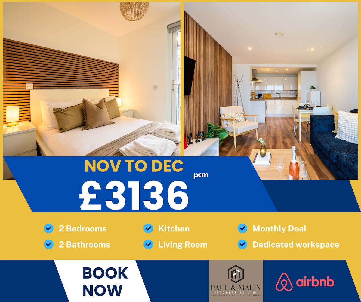 🌐 Paul & Malin Properties Short Lets & Serviced Accommodation Manchester🌐 🔥 BIGGEST SAVINGS OF 2025: November-December Special 🔥 Weekly Deal: Save 10% on 7 Nights! Plan your extended stay and save big. ➞ Free WiFi ➞ Comfortable for Everyone 𝐈𝐝𝐞𝐚𝐥 𝐟𝐨𝐫: ➞ Contractors ➞ Families ➞ Friends ➞ Groups ➞ Business Stays for BBC & ITV personnel ➞ Extended Stays