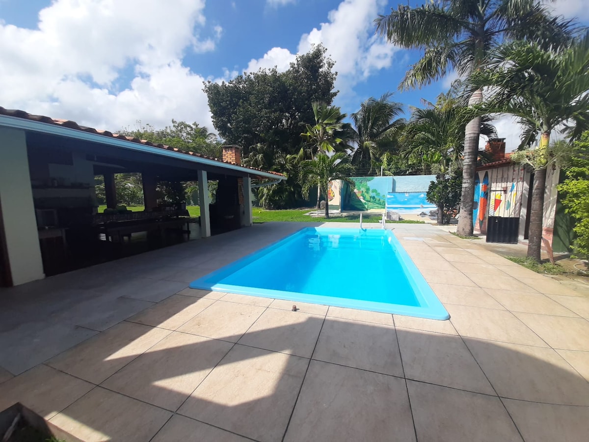 Rilassati con la tua famiglia in questa casa sulla spiaggia situata in un condominio recintato con sicurezza 24 ore su 24, che offre tutta la struttura per il tempo libero e la tranquillità. 3 suite cucina attrezzata riscaldato barbecue tanti spazi verdi intorno alla casa. Struttura del condominio piscina per adulti e per bambini campi sportivi area giochi prainha,BBQ Sicurezza 24 ore su 24.