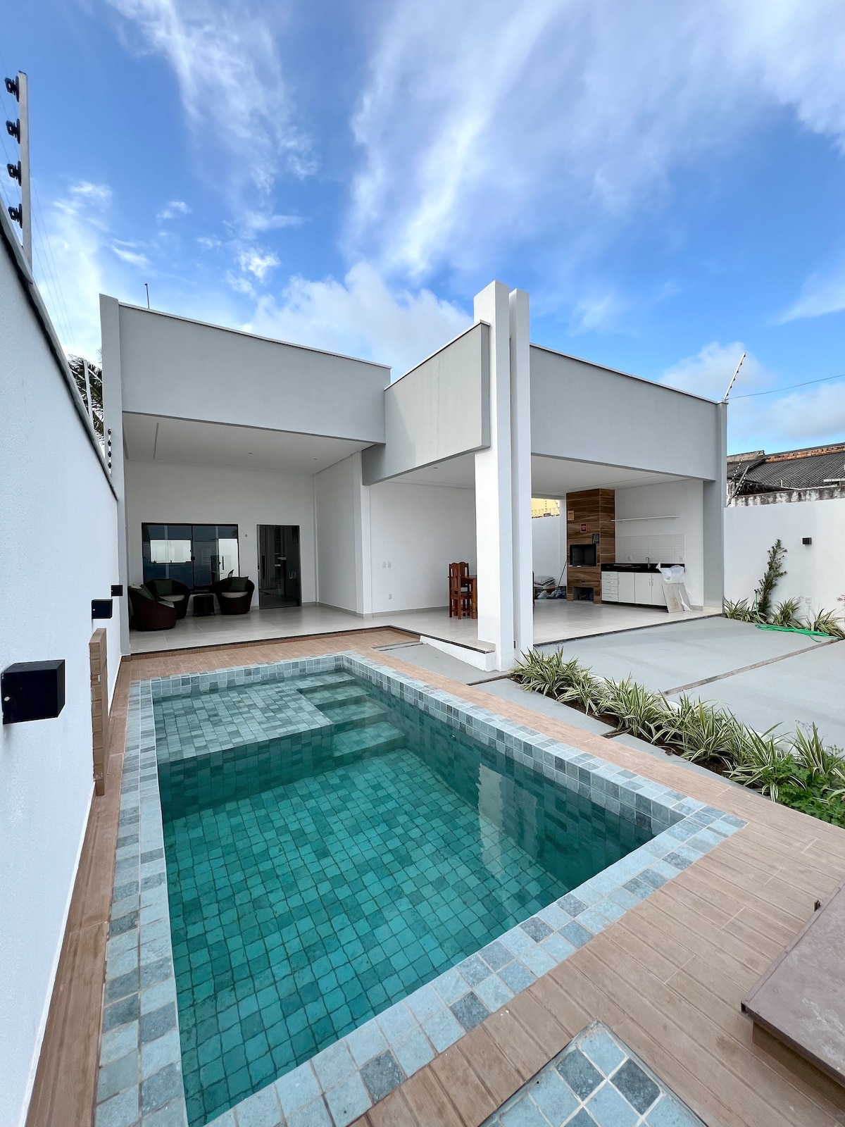 250 m2 di casa e comfort nel cuore di Praia do Atalaia a Salinas-PA. Casa nuova e grande, piscina con idromassaggio, area gourmet con barbecue, 3 ampie camere da letto, 2 delle quali sono suite, aria condizionata in tutte le camere, 3 bagni, garage privati, Wi-Fi potente, smart TV, letti, letti a castello, divano letto e lettini. Cucina attrezzata con utensili domestici completi, grill, forno a microonde, frigorifero. Sorveglianza elettronica e sicurezza 24 ore su 24. Situato a Praia do Atalaia a Salinópolis Vale do Sal