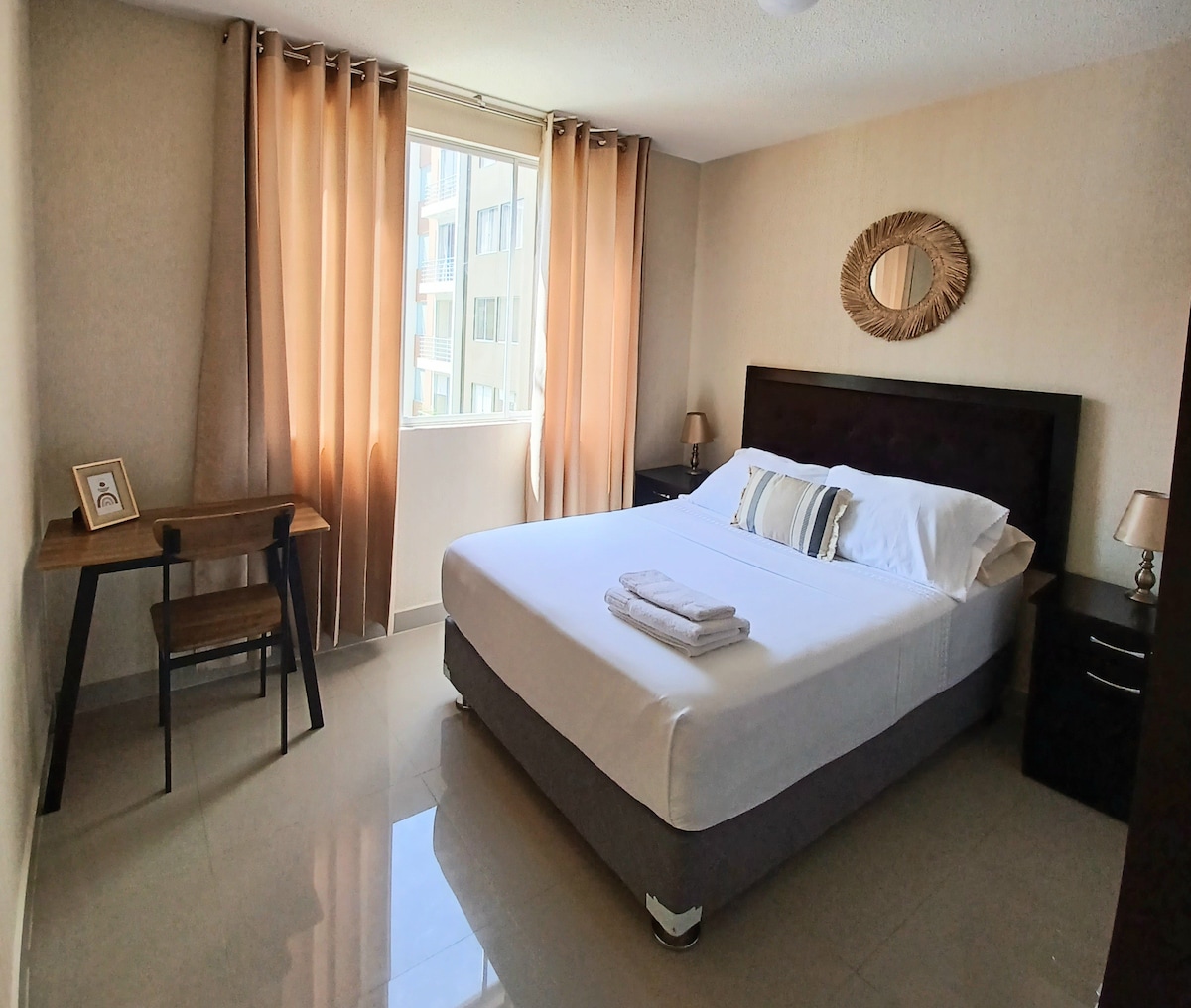 Il nostro nuovo appartamento Sol de Piura è progettato per offrirti il massimo comfort, come se fossi a casa tua. 👮♂️ Il posto è molto sicuro; si trova in un condominio che include telecamere di sicurezza e sorveglianza 24 ore su 24. 🏙️ Ha una vista panoramica sulla strada. Inoltre, essendo situato su un piano alto, l'atmosfera è fresca e ventilata. 🛍️ La posizione è abbastanza centrale, vicino a banche e cantine, e si trova a 10 minuti a piedi dal centro commerciale Real Plaza.