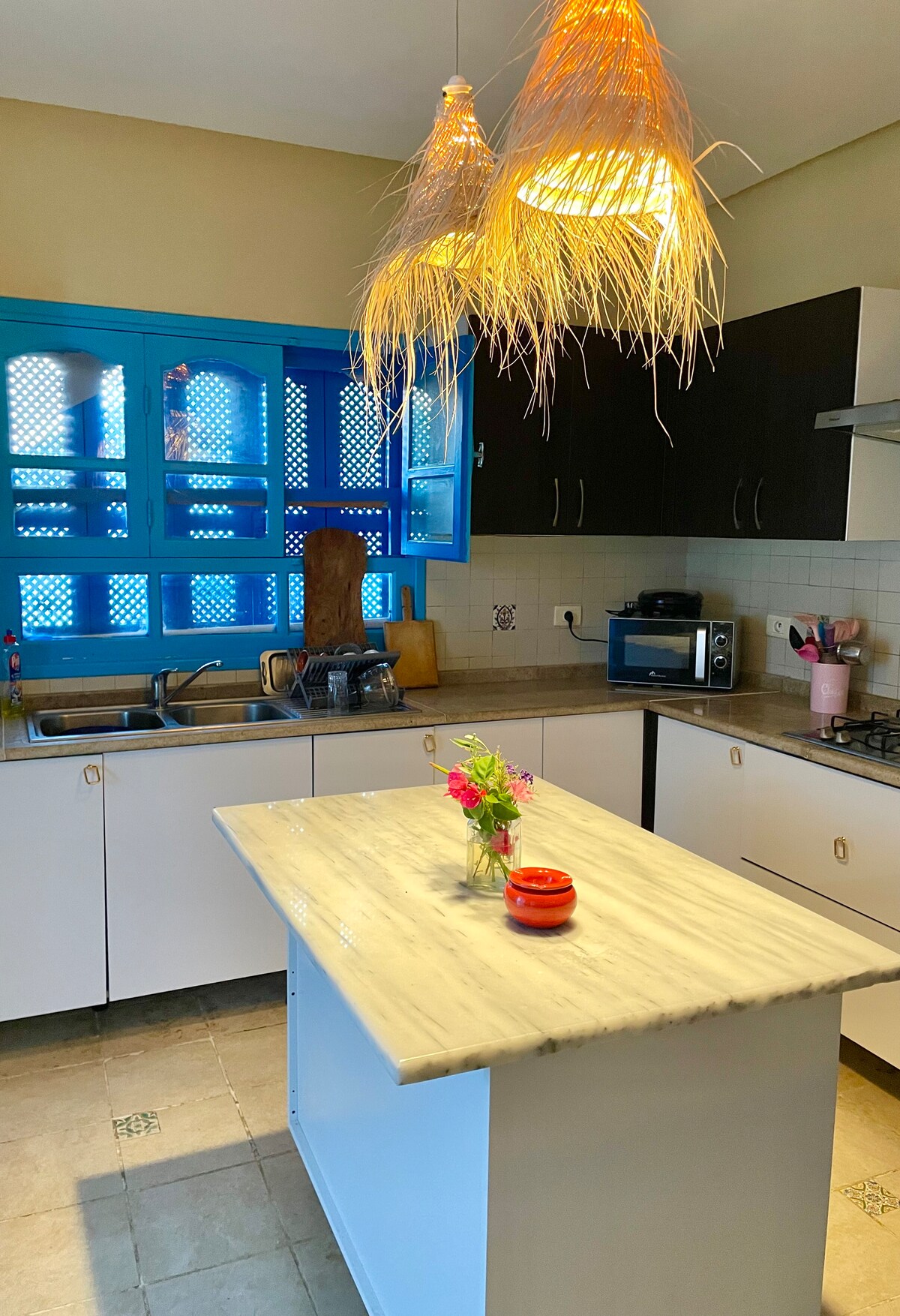 PULIZIA GIORNALIERA INCLUSA Una villa di charme all'interno di una tenuta interamente privata di circa un ettaro che può ospitare, grazie alle sue 3 suite, 6 persone. Portineria, custode 24 ore su 24 e altri servizi à la carte. Rocaria è la promessa di un cambiamento di scenario totale pur essendo a soli 10 minuti dall'uscita autostradale HAMMAMET, a 10 minuti dalla località balneare Yasmine Hammamet, a 1 ora dall'aeroporto Tunisi-Cartagine e a 40 minuti dall'aeroporto Enfidha-Hammamet.