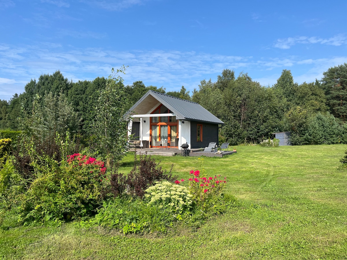 Una casa nella foresta con un ampio giardino privato si trova a 30 minuti di auto da Tallinn. All'interno della casa è presente una sauna elettrica (6h max. inclusa nel prezzo della casa), vasca idromassaggio (+50eur) e una sauna panoramica esterna a legna (+ 30eur) Sul grande terrazzo sono presenti 2 lettini prendisole e mobili da esterno, e gli ospiti hanno a disposizione anche un barbecue. Aria condizionata, riscaldamento a pavimento nella doccia/sauna e caminetto interno nel soggiorno