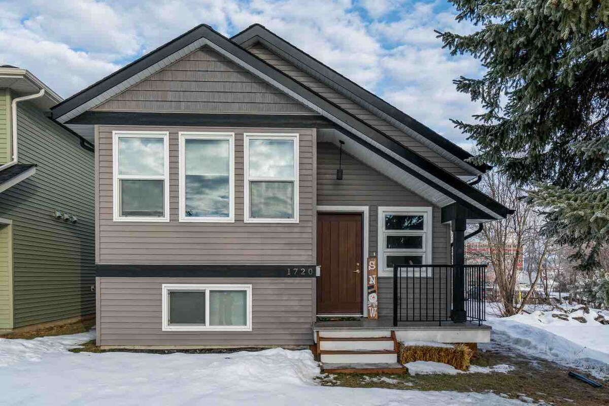 Moderna suite con una camera da letto al piano terra con ingresso al piano interrato e ampio soggiorno in una nuova suddivisione vicino all'università. Comoda per 2 ospiti adulti. Situato vicino alla fermata dell'autobus e a pochi minuti di auto da Walmart, Costco e Superstore. Ingresso privato con lavanderia in loco. La cucina è fornita di utensili in acciaio inox e piano cottura. Ci sono Telus Optik TV e Netflix da godersi su una smart TV a schermo piatto da 55 pollici. Parcheggio gratuito disponibile in strada per un veicolo.