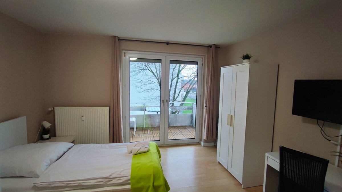 Goditi la vita in questo alloggio in posizione centrale. Cosa ti offriamo: - una graziosa camera nel seminterrato con mini cucina e bagno con vasca - 10 min. a piedi dal centro della città - 3 minuti a piedi dalla fermata dell'autobus - posizione tranquilla in terza fila - posto auto per la tua bicicletta - Uso comune della nostra terrazza Cosa potrebbe dare fastidio: - La casa è rumorosa, la cucina è proprio sopra l'appartamento, nessun isolamento acustico, nei giorni feriali a partire dalle 6:00 - la doccia è alta solo 1:85m - nessun accesso per disabili