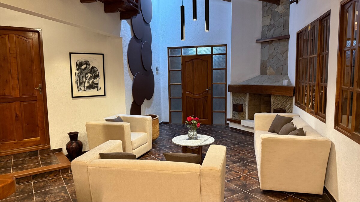 La migliore baita di Samaipata! Disponibile al pubblico per un periodo di tempo limitato! Area sociale privata, con falò, barbecue e una vasca idromassaggio rustica riscaldata da legna da ardere. Abbiamo trasformato la terza camera da letto in un cinema con proiettore 2K e 2 divani letto 🚘 3 min Plaza Principal -Iltraast wi-fi ⚡️ -Movie Theather 🎞️-Fireplace 🔥 - Hot tube rustico 🤩 -Grill and Dining Area🥩 -Fire Pit 🪵🔥- Cucina completa🍳 *La vasca idromassaggio ha un costo aggiuntivo di 20 USD per la preparazione e la pulizia* Check-in / 3Pm Check-out /11Am