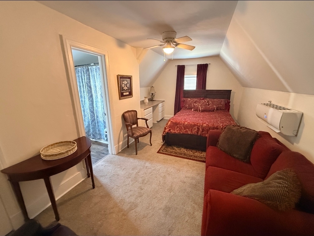 Questo cottage si trova accanto a una casa storica splendidamente conservata, a pochi passi dall'ospedale e dal tribunale, nel cuore del centro di Clinton, NC. Che tu sia in visita per lavoro, per un evento o solo di passaggio, godrai del comfort e della comodità di questo spazio tranquillo e accogliente. La camera dispone di un letto comodo, lenzuola fresche e un bagno privato completamente attrezzato. Avrai anche accesso agli spazi condivisi della casa, tra cui un portico rilassante, una zona pranzo e un patio sul retro.