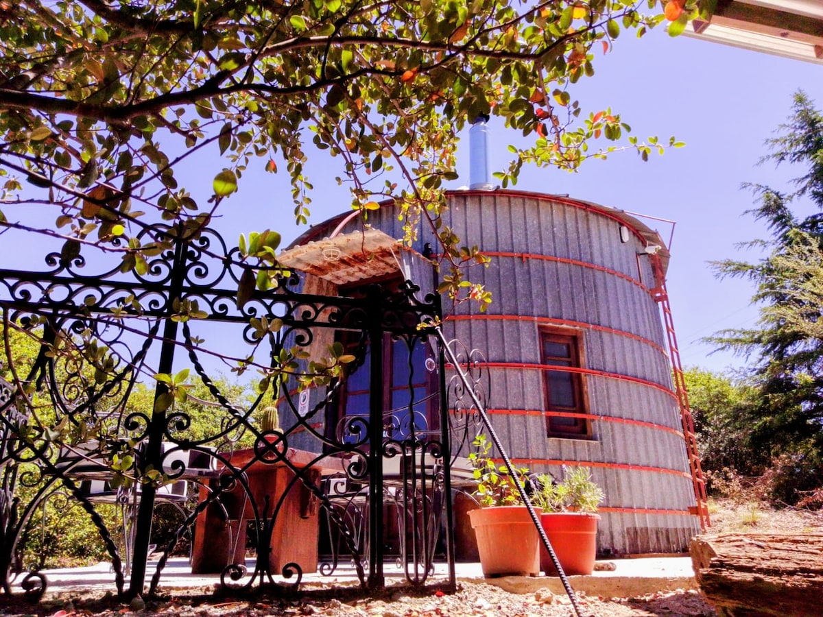 40 años juntó granos en Hernando. Hoy, después de un año de reformas, nos aloja. Los granos del mundo somos nosotros. Baño, agua caliente, cocina, cochera, parrilla, todo eso promedio de una casa, pero en un silo redondo de 5.5 de altura, con seleccionadas aberturas antiguas, una micro piscina tipo estanque con playita, un túnel solar en el techo. No es una casa, es un silo. Te vas a alojar en un silo a 1400msnm. Tenemos perros, gatos, patos, gallos, cabra y gallinas. Ninguno hace daño.