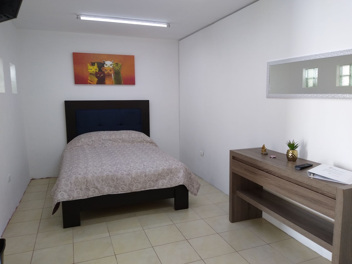 Goditi il comfort di questa camera e sentiti come a casa. La camera ha un letto matrimoniale ideale per 2 persone, un bagno privato all'interno della stessa stanza, TV, internet, serratura con chiave e l'ideale è che ha una lavanderia dove ha una lavatrice per te e un posto dove puoi lavare i tuoi vestiti il costo è già incluso nel prezzo per notte, è fantastico.