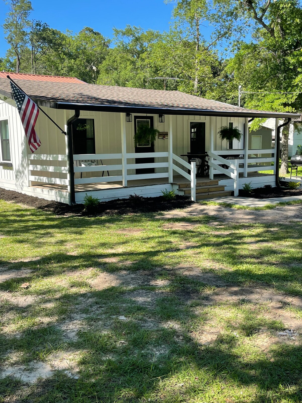 Siamo a 5 miglia dal bellissimo lago Sam Rayburn. Puoi pescare tutto il giorno o la sera e tornare a casa in una stazione di pulizia del pesce per il tuo bottino. Tanto spazio per parcheggiare e caricare la barca per essere pronti per il giorno successivo. Terrazza privata con griglia e posti a sedere, se scegli di cucinare il tuo pasto. Doccia calda pulita. Soggiorno molto pulito con TV a grande schermo/film o libri, se scegli di leggere. Biancheria da letto matrimoniale per un ottimo riposo notturno. Molto tranquillo, con solo mucche, uccelli e scoiattoli