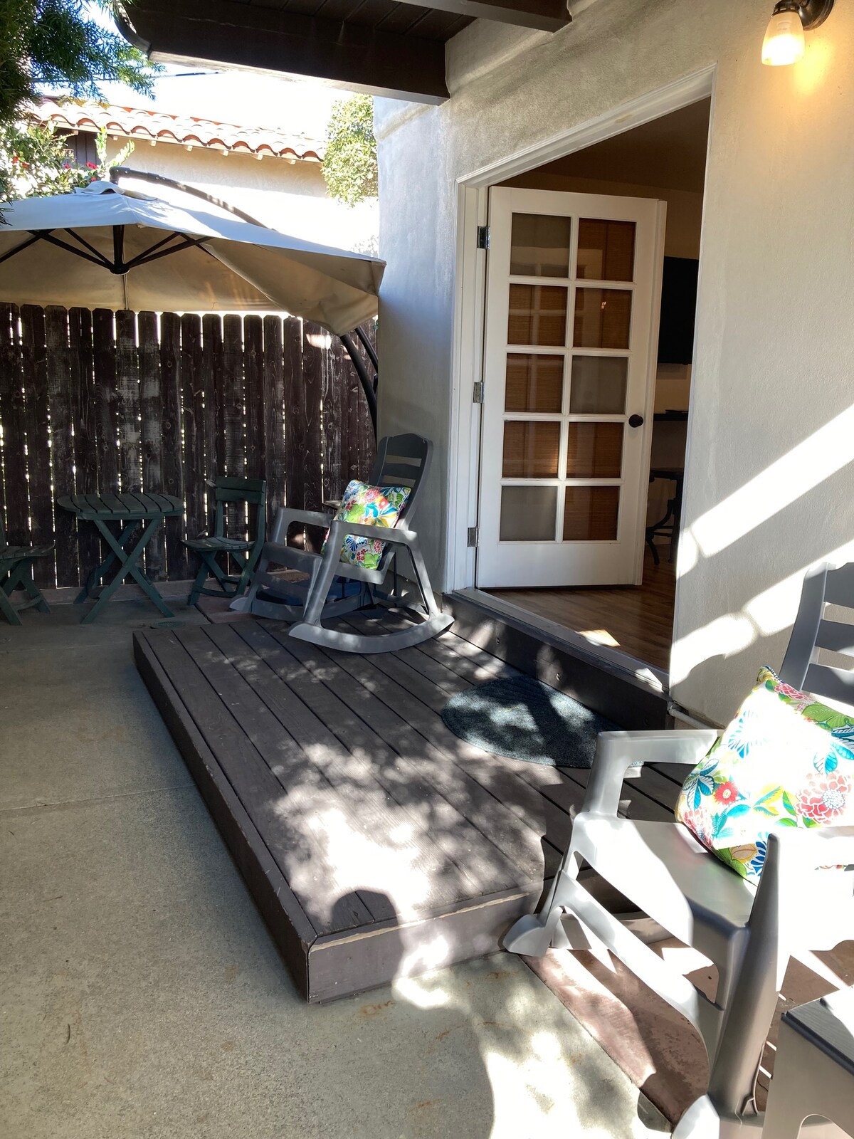 Un monolocale privato situato in posizione strategica nel quartiere Trestles di South San Clemente. Spiagge di livello mondiale, sentieri escursionistici e un campo da golf sono tutti raggiungibili a piedi. Finiture nuovissime e pulitissimo. Perfetto per single o coppie in cerca di una vacanza. Completamente attrezzato con Apple TV e Google Nest Wifi. Il centro di Del Mar e il molo di SC si trovano a pochi chilometri a nord e sono il luogo ideale per visitare la città, fare shopping, cenare e godersi il nostro bellissimo villaggio spagnolo sul mare.