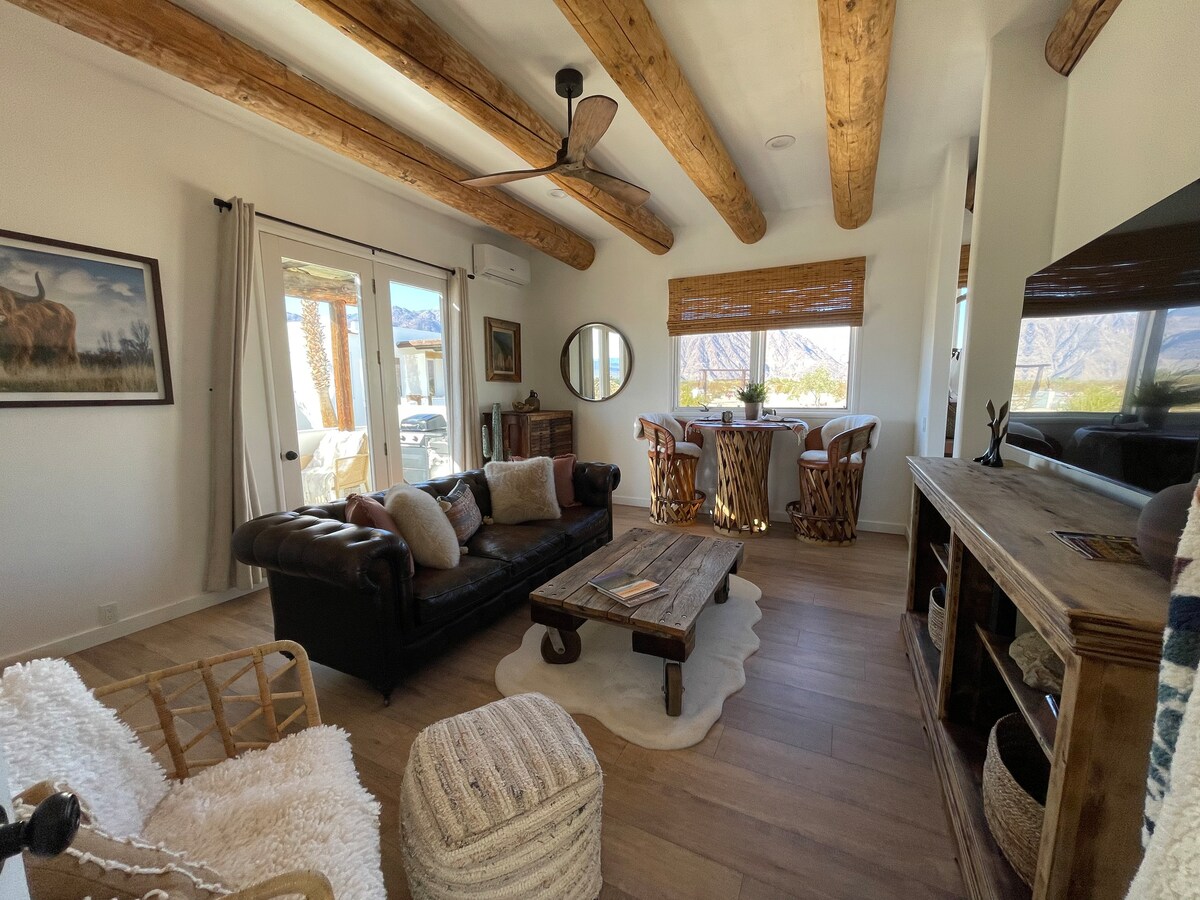 Questo rifugio nel deserto, ristrutturato e in stile moderno di metà secolo, offre un letto king-size di alta qualità, biancheria da letto, asciugamani e accappatoi in cotone di lusso, e una cucina ben attrezzata per accogliere i viaggiatori stanchi. Vicino alla città (800 metri) con negozi, ristoranti, campi da golf, piscine, campi da tennis ed escursioni a pochi minuti di distanza. Esplora il cielo notturno in questa comunità registrata Dark Sky con telescopio in dotazione, avventura fuoristrada nell'Anza-Borrego State Park, escursioni sui sentieri locali o semplicemente ammira il paesaggio montano circostante.