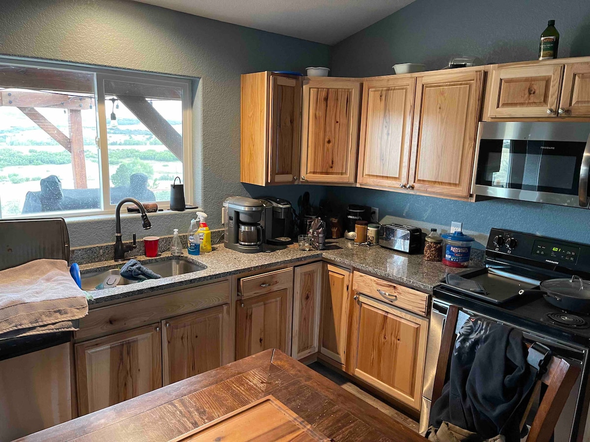 Situata ai piedi del Monte Tyndall, su una strada principale della contea, questa casa offre un facile accesso e una strada segnalata. Si trova a 7 minuti in auto dalla città. Splendida vista sulle Wet Mountains dalla spaziosa terrazza, mentre si griglia. Ampie escursioni e accesso BLM. L'interno della casa offre un ambiente accogliente con splendide viste panoramiche. La zona giorno principale include una TV, il wifi e un amplificatore per telefoni cellulari. L'alloggio dispone di 2 camere da letto e può ospitare comodamente 4 persone. La grande camera padronale ha un letto matrimoniale, mentre nella seconda camera ci sono 2 letti singoli.