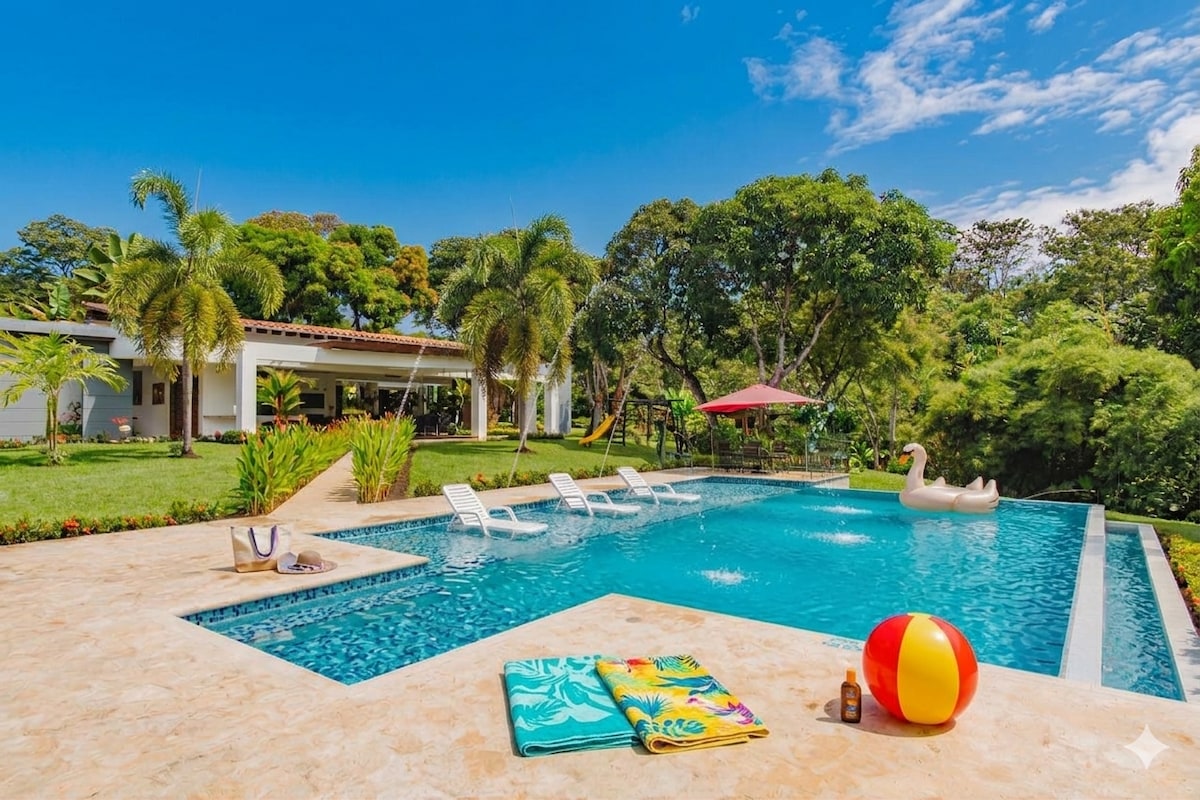 Experience the luxury and tranquility of this stunning 5-bedroom, 7-bathroom home, featuring resort-style amenities in the peaceful town of Sopetrán. Nestled in a prestigious residential community, this retreat offers a perfect blend of modern comfort and breathtaking natural beauty, making it ideal for relaxation and entertainment. ✔ Swimming Pool ✔ Fully Equipped Kitchen ✔ Smart TVs ✔ High-Speed Wi-Fi ✔ Free Parking ❗We are firmly against ESCNNA ❗25+ Guest must pay an extra fee
