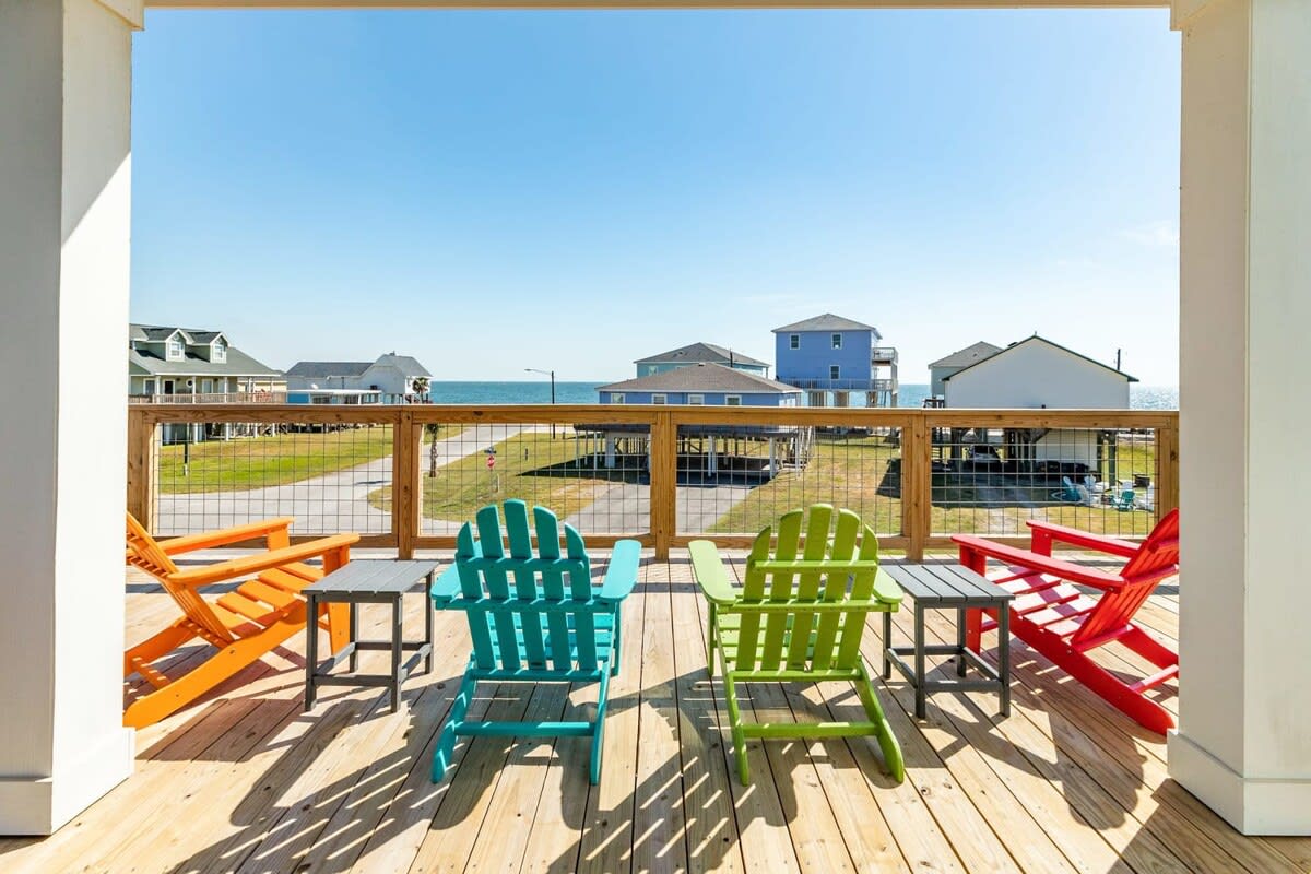 NEW Beachfront Construction! Truly a Unicorn:🦄 LOCATION, LUXURY, and So Nice to Have NEW! A pochi passi dai migliori ristoranti e dalla spiaggia di Surfside! Goditi le amache e i giochi sotto casa. Sali i gradini fino a una splendida terrazza ombreggiata con vista dal San Luis Pass fino al molo! Più di 180 gradi panorami senza ostacoli. Camere da letto aperte su SunDeck e osservazione delle stelle con 🔥 braciere YouTube Beachfront Luxe per un video $125 per le spese di pulizia e solo 75$ in totale per un massimo di 2 animali domestici per l'intero soggiorno!