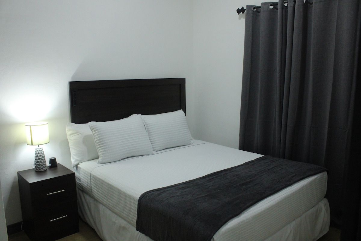 Diseño elegante, a/c; cerca de atracciones, restaurantes, hospitales y tiendas. Alojamiento privado, seguro, - Sala con baño social, sofá cama y smart TV - 1 habitación con litera Queen, baño dentro de la habitación - Barra desayunadora para disfrutar tu comida de Delibery, refrigerador bar (Debes de encenderlo al llegar ) microondas Especial esmero en la limpieza. Te ofrezco papel higiénico, jabón para cuerpo,shampoo, acondicionador Parqueo (Externo) Escritorio portátil con rodos