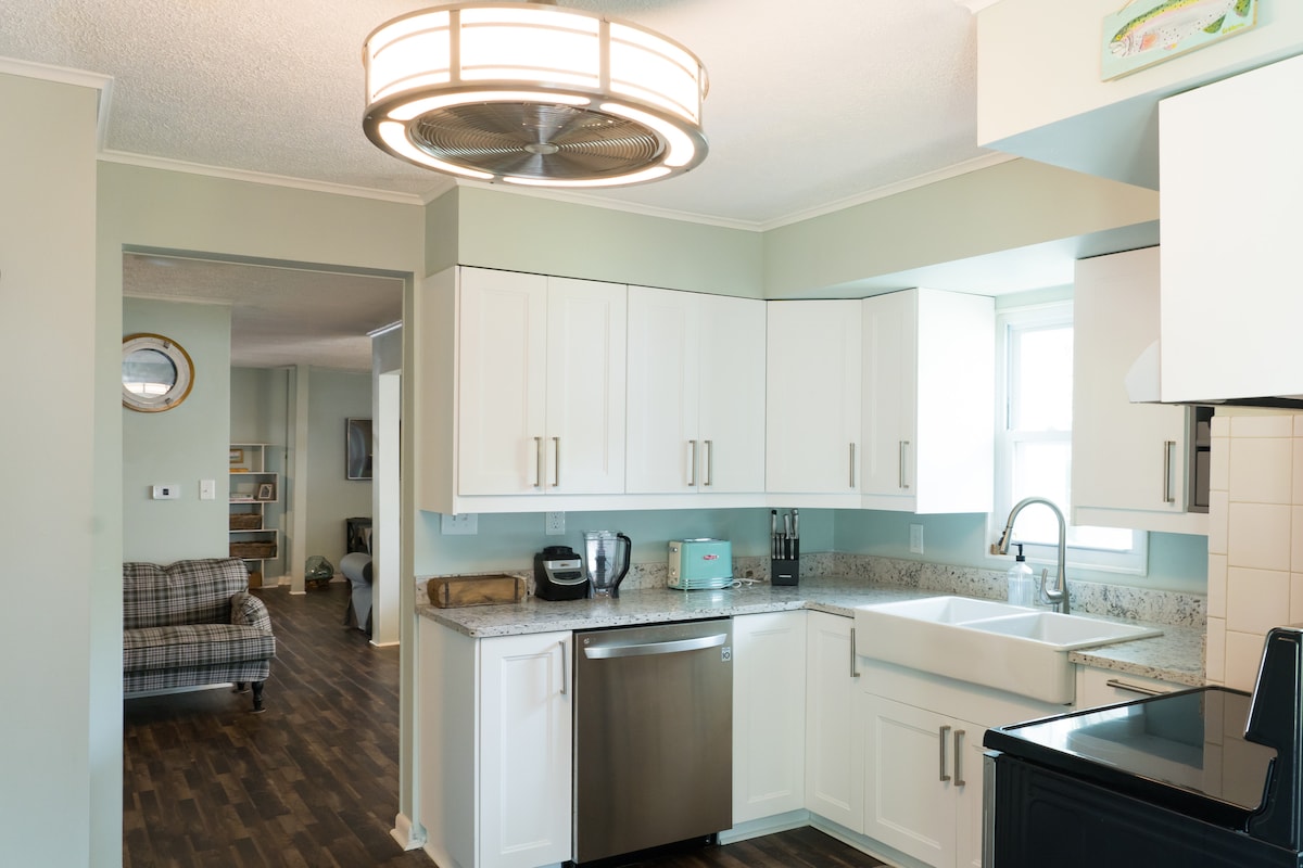 Un bellissimo paradiso appartato! Rispondiamo rapidamente Questo spazioso e accogliente cottage per non fumatori vanta una splendida vista sull'Elizabeth River. Si trova a 8 km dal centro di Norfolk e a 5 minuti a piedi da una fermata della metropolitana leggera nelle vicinanze. Un pass giornaliero costa 4,50 $, incluso un traghetto per Portsmouth. Servizi eccellenti Interni ristrutturati Bellissimo caminetto Nuovo pavimento/cucina completamente attrezzata Uova biologiche fresche/yogurt/snack/succo di frutta/caffè inclusi Wifi e TV via cavo con HBO Soundbar Bluetooth Biancheria di lusso Nuova veranda con vista sull'acqua Lavatrice e asciugatrice