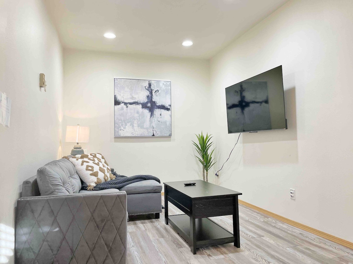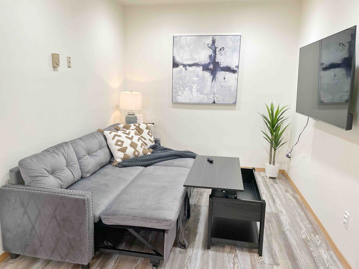Nel cuore del centro di Kalispell e a pochi passi da grandi attrazioni! A breve distanza in auto dal Glacier National Park, dal lago Flathead, da piste da sci, da sentieri escursionistici e da Whitefish e Bigfork! Questo appartamento dispone di 1 camera da letto, 1 bagno con letto matrimoniale nella camera da letto e un letto matrimoniale estraibile nel soggiorno. Soggiorno aperto con 3 sgabelli in cucina, ampia cabina doccia piastrellata, lavatrice e asciugatrice. Se hai bisogno di più spazio, sono disponibili anche altre unità come case vacanze!