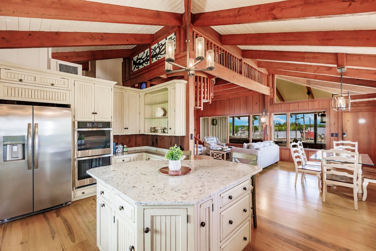 Direct back bay access+ boat dock & lift+ kayaks + bikes. 1 mile to Everglades National Park! Minutes to shops & dining! Delightful rustic home- perfect for a seaside retreat!. Designed for dockside enjoyment: hammocks, swing chairs, outdoor dining. Enjoy a taste of old Florida! - 5 minute boat ride to beach -12 minute car ride to beach -Walk to waterfront dining & live music -Kayak in the Everglades -Fish off the dock -Cool, rustic Old Florida vibe -Bring your boat or rent one