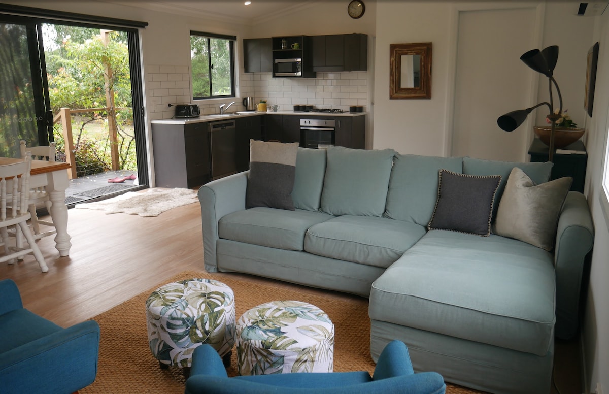 Take it easy at this unique and tranquil getaway. The cabin is the converted pickers quarters when the property was a stone fruit orchard in the past. Have recently planted feijoa orchard. A small and cozy space with spacious verandahs to the north and west. Situated on a quiet and private 100 acres. Abundant bird and wildlife. The cabin is self-catering. Breakfast is not provided altho’ tea and coffee making facilities and basic condiments are provided. The cabin is not suitable for children.