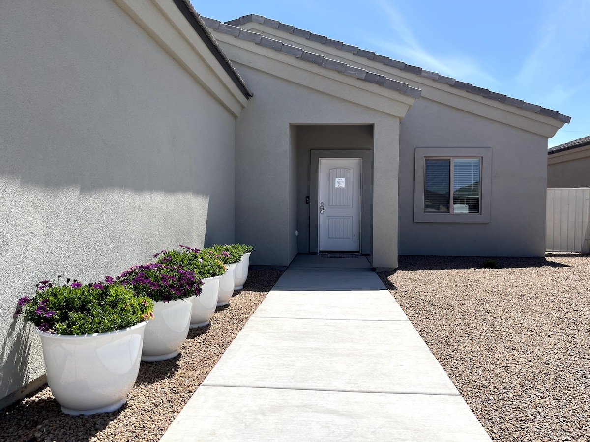 NUOVO!!! ANIMALI DOMESTICI AMMESSI!! Questa casa con 1 camera da letto e 1 bagno può ospitare 4 persone e si trova in una posizione perfetta a pochi minuti dal centro medico regionale, I40, Route 66 e Historic Downtown Kingman. La casa è anche molto vicina a molti ristoranti famosi, campi da golf locali e persino Starbucks. Ciò che separa questa casa dalle altre della zona è che hai il tuo cortile, una zona per cani, una lavatrice e un'asciugatrice e tutti gli utensili per mangiare e bere insieme a un frigorifero grande, un barbecue esterno a gas, una smart TV, ecc.
