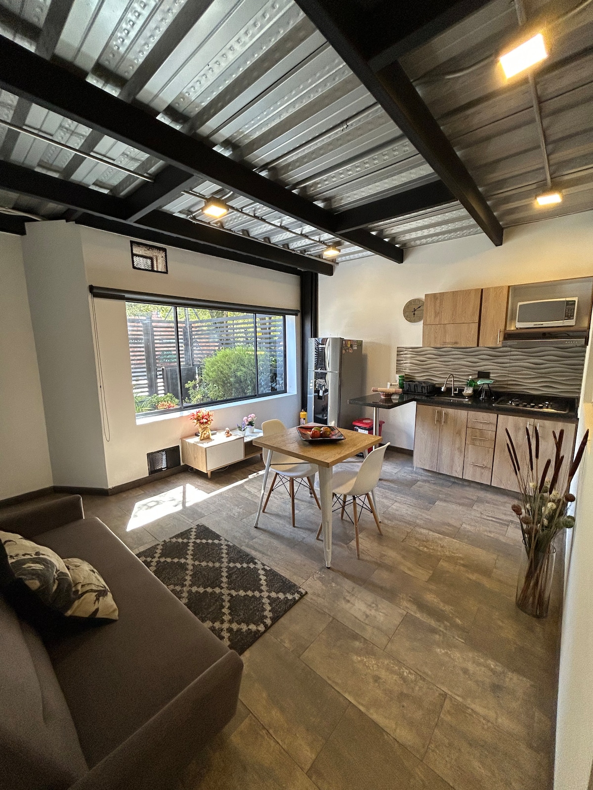 Goditi un'esperienza unica nel nostro duplex bohémien, vicino al centro internazionale e al Museo Nazionale. Ideale per chi cerca comfort e stile a Bogotá. Al piano terra, c'è un accogliente soggiorno con TV, cucina attrezzata con bancone, frigorifero e fornello, e dettagli caldi. Sali la scala a chiocciola fino a uno spazio di lavoro tranquillo, un letto matrimoniale, un armadio e un bagno privato con acqua calda. Decorato con materiali organici e ceramiche, ogni angolo è speciale. Prenota ora!