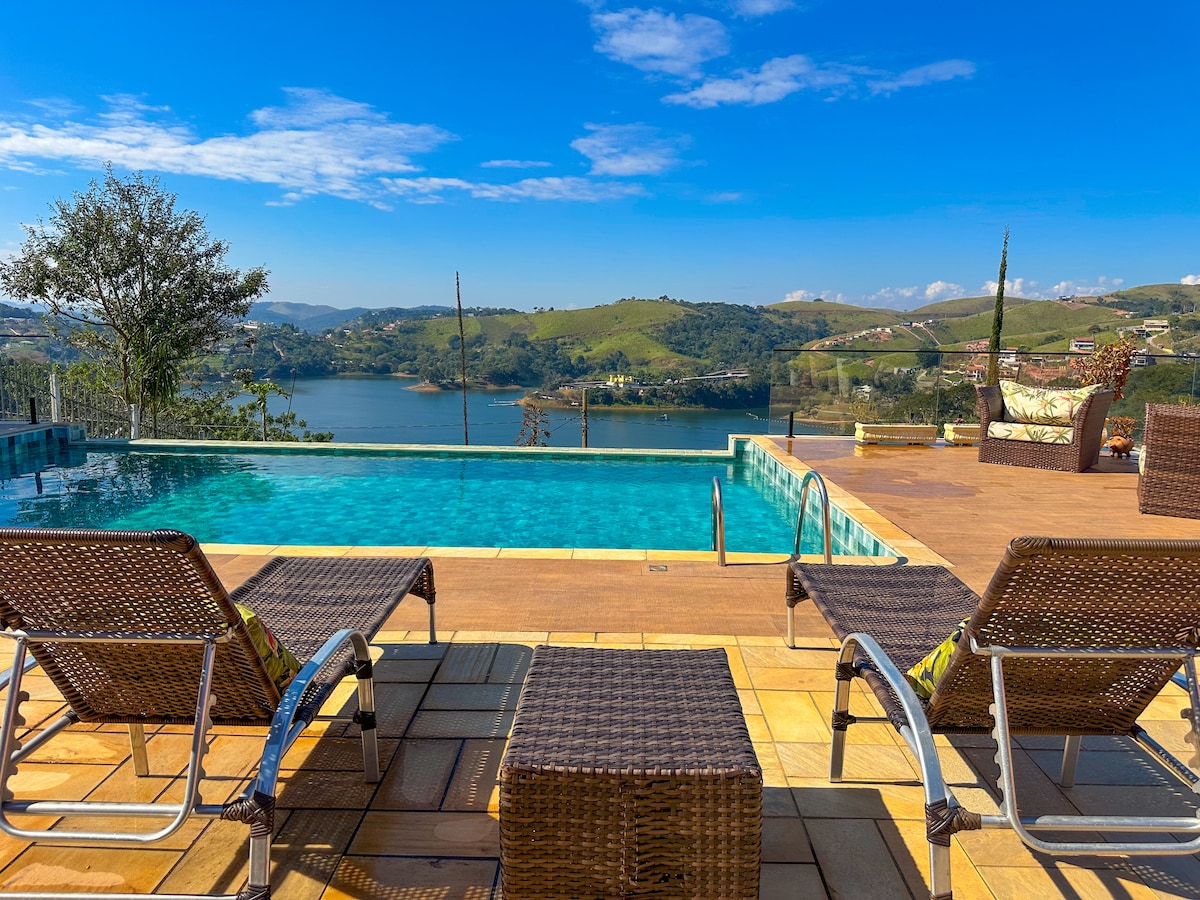 Sito panoramico con accesso alla diga di Igaratá, vicino a SP. Ideale per eventi aziendali, feste di compleanno- Affitto Day Use - senza pernottamento. Vista mozzafiato, molto verde. Sala da ballo, ampio spazio ricreativo: piscina, scivolo, campo da calcio, campo di sabbia (beach tennis/beach volley) accesso alla diga, sala giochi (biliardo, ping pong e calcio balilla), barbecue, fornello industriale, forno a legna, fornello a legna, spazio per il falò, 2 spogliatoi con docce riscaldate e servizi igienici.
