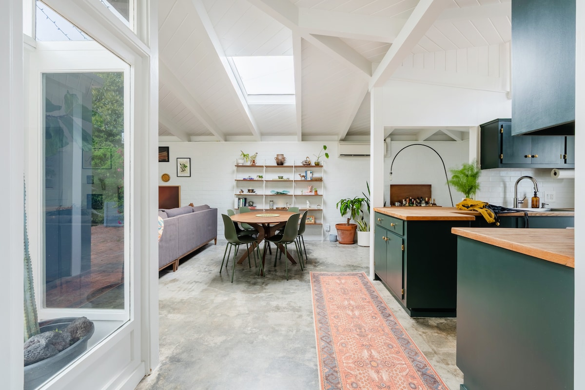 ☆ Luminoso, spazioso e arioso Internet in fibra☆ 1000/1000 Wifi di livello☆ aziendale Letto ☆ matrimoniale grande ☆ Ampio spazio di lavoro ☆ Tende oscuranti ☆ Lavatrice e asciugatrice Questo loft ti accoglierà con un'abbondanza di luce naturale e una leggera brezza oceanica che entra attraverso due grandi lucernari. Svegliati sotto il grande albero di frassino che domina l'edificio. Due ampi spazi di lavoro e una connessione internet velocissima ti invitano a lavorare da casa. A pochi minuti da Venice Beach, questo è il luogo perfetto per lavorare, rilassarsi e godersi Los Angeles.