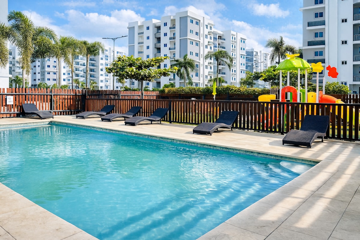 Lussuoso appartamento nella città di Santiago, in una posizione assolutamente ideale, in uno dei settori più esclusivi. Sicurezza 24 ore su 24 e tutti i comfort, per offrire un soggiorno confortevole ed esclusivo agli ospiti che vogliono godersi una vacanza indimenticabile. Moderno y lujoso apto. de 1 habitación, para vivir una experiencia única. en Soha Panorama, con amenidades como seguridad 24/7, Parqueo privado, Ascensor, acceso a Terraza y piscina con vistas impresionantes y GYM.
