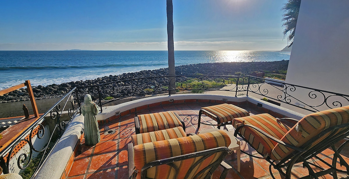 Unique 3-story oceanfront sanctuary in San Miguel, 15min from Valle de Guadalupe. Wake up to Pacific sounds and enjoy Ensenada’s best sunsets from our massive terrace with a firepit. WORK & PLAY: 15ft ocean-view desk for the ultimate workation. INDOOR CLIMBING: Try our unique climbing wall, a modern architectural gem. Just 300ft from the beach and surf break. PET FRIENDLY: Your furry friends are welcome! Experience comfort, surf, and wine in one place. Your ultimate Baja lifestyle starts here.