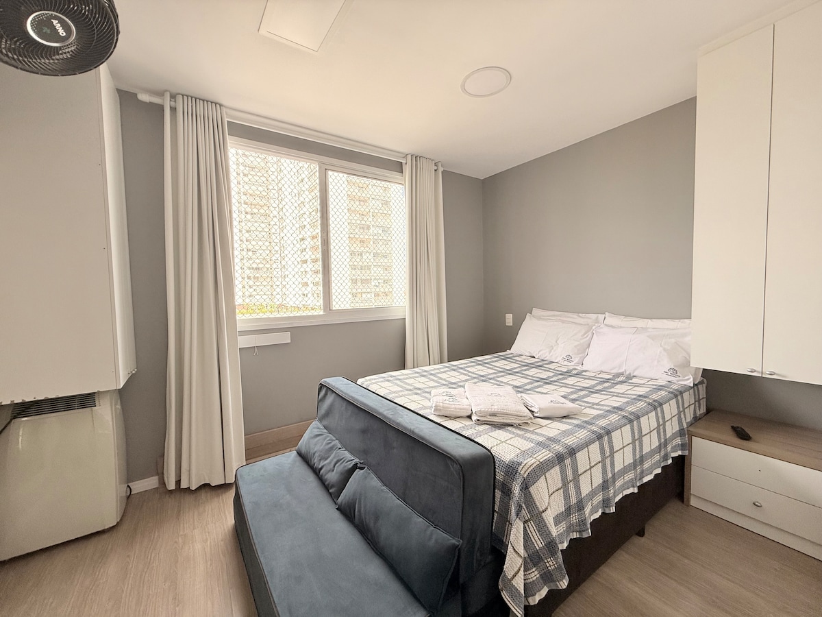 Apto pé na Areia, garage + A/C