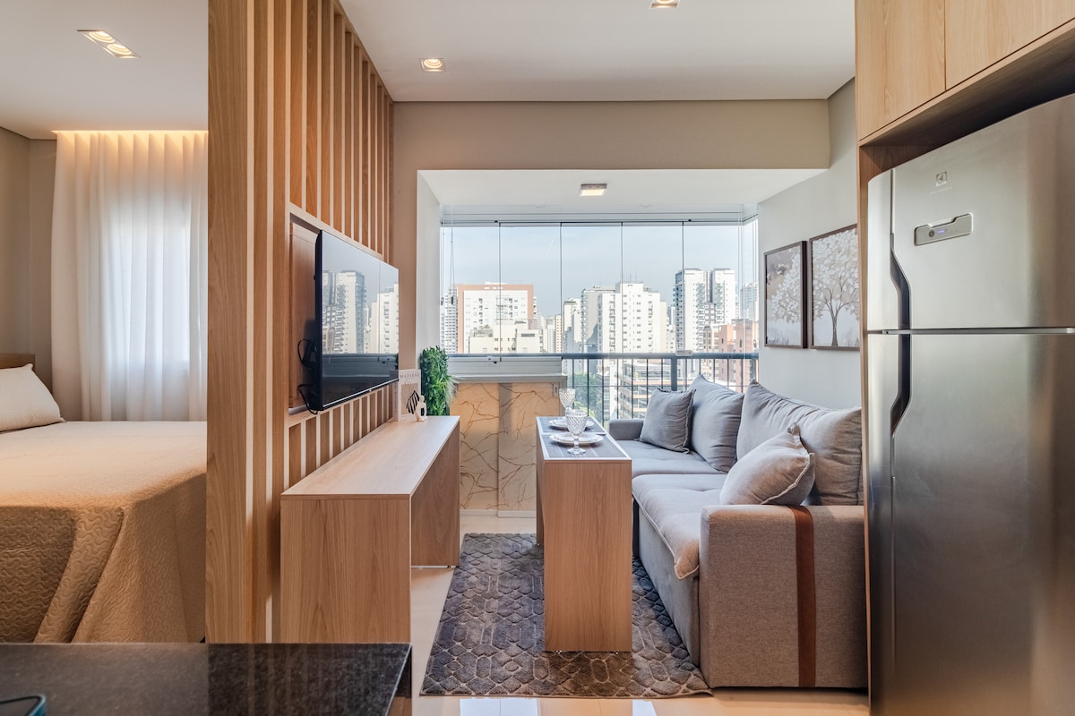 ATENÇÃO: Para utilizar o facility do estacionamento deve-se avisar com antecedência. Consulte a entrada do local nas fotos. Loft moderno bem decorado com vista urbana linda de São Paulo. Oferece cama Queen com pillowtop de 10 cm, TV de 50 polegadas, e ambiente iluminado pelo sol. A cozinha é equipada com utensílios de qualidade e inclui mesa de jantar e bancada de trabalho. O armário tem um bom espaço de armazenamento e o apartamento conta com ar-condicionado para conforto o ano todo.