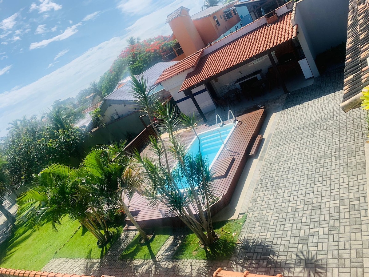 ♦️INFORMAZIONI IMPORTANTI♦️ Situato a 50 metri dalla spiaggia di Itaúna 🔹️4 camere con ventilatore da tavolo, 3 camere con aria condizionata - Valore consumo separato; 2 bagni, soggiorno, cucina, Airgame, biliardo e totó; 2 piscine (adulti e bambini), 2 barbecue, amache, area falò, 🚩wifi, garage. 🏖 7 minuti di auto dal commercio e dalla stazione degli autobus.Animali domestici🐾 ammessi 🚩telecamere di sicurezza aree esterne. 🚫 VIETATO SUONO ALTO E VISITATORI. Limite 8 ospiti. NON FORNIAMO BIANCHERIA DA LETTO, bagno e viso.