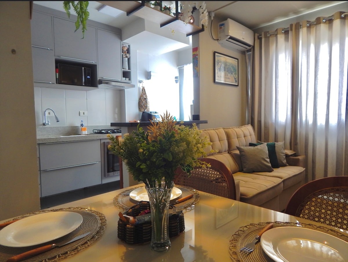 Appartamento nuovo, completo e sicuro! molto vicino al centro di Maringá che offre tutti i comfort possibili. Dispone di internet da 600 MEGA (fibra ottica), due tv una è SMART TV, aria condizionata, biancheria da letto e da bagno pulita, ferro da stiro, set di pentole e altri utensili che facilitano il soggiorno. Lo stabile oltre ad essere nuovo, è dotato di ascensore, telecamere di monitoraggio e posto auto coperto. Abbiamo check-in e check-out flessibili con preavviso!