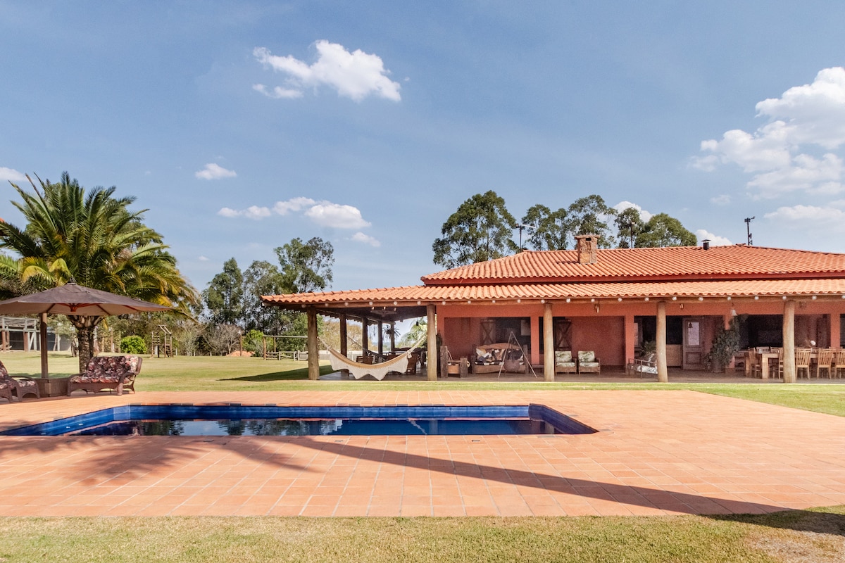Ti diamo il benvenuto al Magic Quintal, una fattoria appositamente preparata per la tua famiglia! Immerso nella natura, il casale dispone di 2 piscine, parco giochi, pallavolo, biliardo, caminetto e braciere. Il divertimento è garantito! Ambienti ampi e integrati, cucina completa e zona gourmet con incantevoli viste sulle montagne. Buon divertimento! Spazio sicuro, in condominio, perfetto anche per gli animali domestici. È una pace... Qui, ogni momento diventa un dolce ricordo. Prenota ora e vivi momenti indimenticabili!
