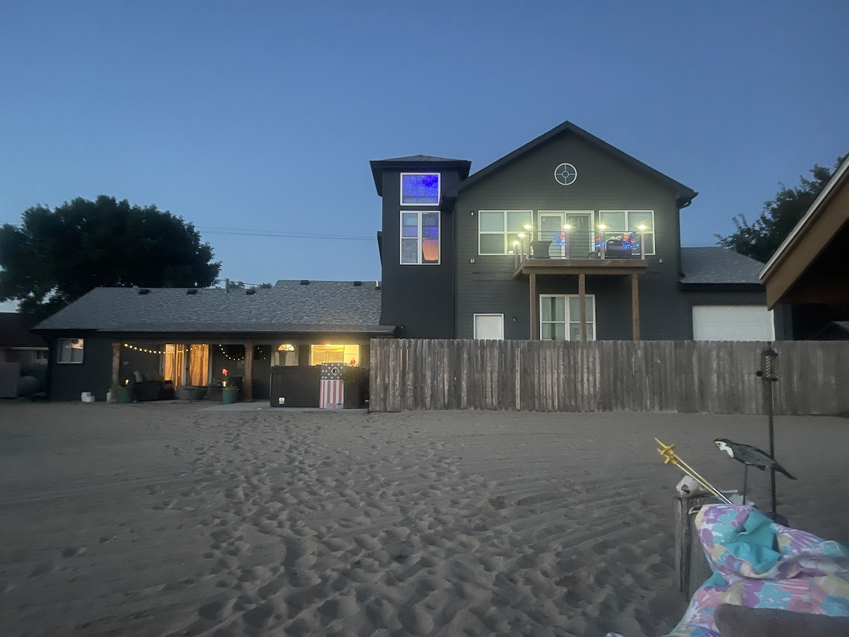 Sentiti come a casa tua alla Sandy Bottoms Lake House! Casa privata sul lungomare recentemente ristrutturata, composta da cinque camere da letto, 315 metri quadrati di spazio abitabile, spazio per ospitare comodamente fino a 18 persone, un ampio terrazzo con un'intima terrazza al terzo piano che si affaccia sulla spiaggia, un patio a pochi passi dalla sabbia e dall'acqua, il tutto immerso in un quartiere tranquillo, lontano dal trambusto della città, ma a soli 10 minuti di auto da Omaha.