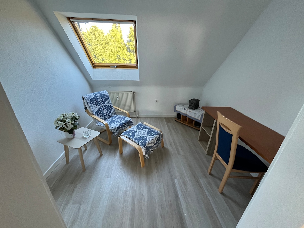 L'attico dispone di una zona giorno. Wi-Fi e Smart TV, una zona notte per 2 persone, un bagno e un piccolo angolo cottura. Una cucina completa con lavatrice, lavastoviglie, forno e piano cottura è a completa disposizione nel seminterrato. Nel giardino c'è una zona salotto sul laghetto del giardino. Barbecue. Stazione di rifornimento di corrente a 50 metri. Supermercato a 10 a piedi. Fermata dell'autobus a 2 minuti. Distanza Hildesheim 10 minuti in AUTO.