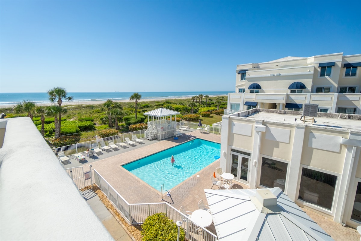 Goditi la vista panoramica sull'oceano dal balcone privato di questo appartamento al secondo piano di fronte alla spiaggia. * Accesso privato alla spiaggia dal cortile * Balcone fronte oceano con comodi posti a sedere * Comoda posizione nel centro di Cocoa Beach * Camera da letto con letto king-size * Cucina completa con elettrodomestici in acciaio inossidabile * 2 Smart TV con canali via cavo * Wifi gratuito * Posto auto assegnato gratuito * Bagno completo * Lavatrice e asciugatrice in loco * Divano letto a grandezza naturale * Attrezzatura da spiaggia e asciugamani * Articoli da toeletta, caffè e tè gratuiti