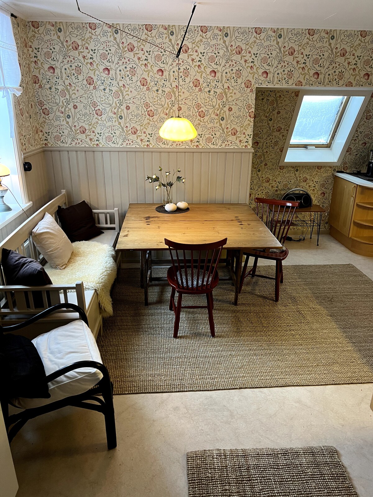 Camera con angolo cottura, 25 metri quadrati. Bagno con doccia. Un letto matrimoniale (larghezza 120 cm) e un divano letto per 2 persone. L'alloggio è pensato per 2 adulti, ma c'è anche spazio per 2 bambini piccoli. Angolo cottura dotato di piano cottura, frigorifrigo, forno a microonde, bollitore, macchina per il caffè. TV e Wi-Fi. Asciugamani e lenzuola inclusi. Avrai anche accesso alla lavanderia che si trova nell'edificio principale. Addebitiamo una tassa di pulizia di 200 SEK per la biancheria da letto, ecc. Tuttavia, ci aspettiamo che tu faccia una pulizia finale prima di effettuare il check-out.
