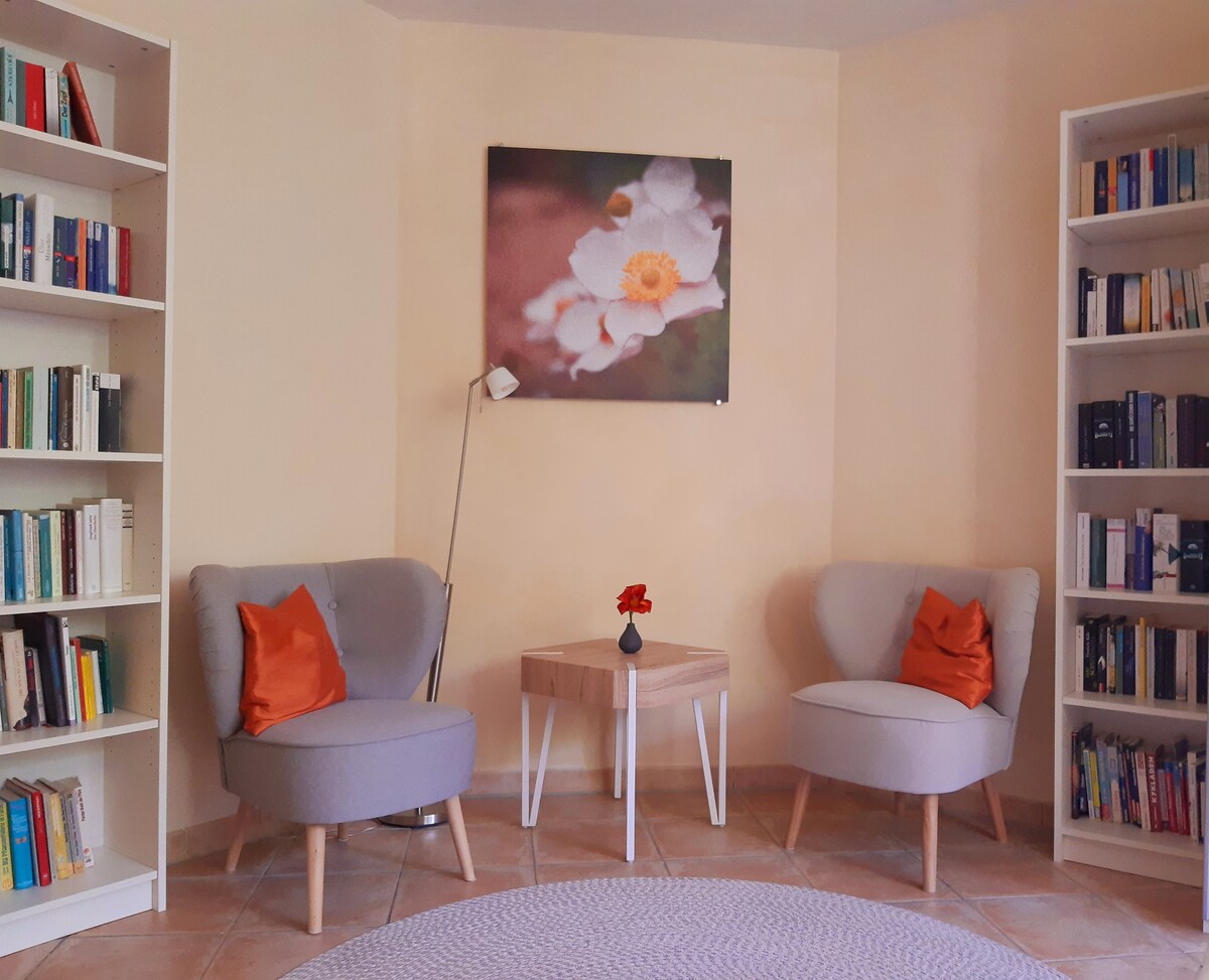 Il nostro accogliente appartamento recentemente attrezzato nel 2015 a Merzhausen offre spazio per 2 persone (circa 40 mq), posizione tranquilla vicino alla natura e tuttavia vicino a Friburgo-Vauban con collegamento ai mezzi pubblici e accesso diretto al giardino al piano terra