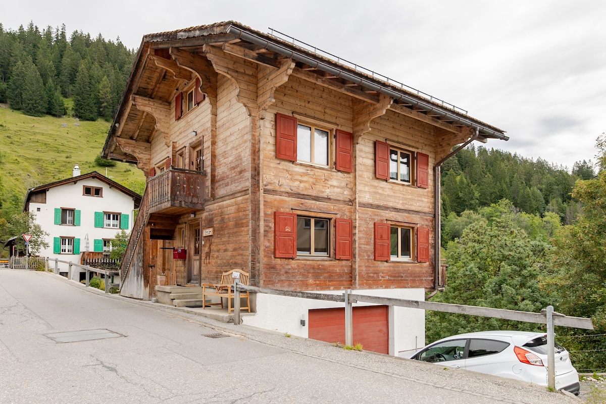 Descrizione Italiano / Description English Nel centro dell'idillio montano grigionese si trova questo bellissimo alloggio. Arredato come appartamento completo, troverete 15 minuti di auto da Coira, relax, ispirazione o semplicemente varietà. This beautiful accomodation is located right in the middle of the idillic mountains of the Grisons.