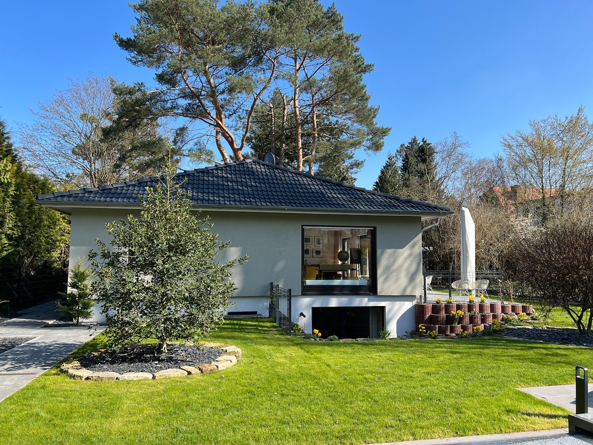 Ti diamo il benvenuto in questa rimessa unica (90mq). Costruito nel 1922, è stato accuratamente restaurato e convertito con materiali di alta qualità. Questa romantica dimora si trova nella villa di Potsdam, con alberi da frutto e da noce secolari, direttamente sulla riva del lago Jungfernsee. In estate, è possibile godersi una nuotata nel lago prima di colazione, se lo si desidera. A due passi dal famoso Glienicke Bridge. Per decenni durante la guerra fredda, il ponte è stato il luogo in cui venivano scambiate spie.