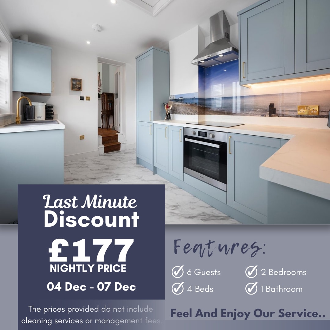 Set peacefully in a private road close to the beach, sea view.. nearly! A short 3 minute walk to dog friendly Wittering & Bracklesham Bay beaches. Perfect for couples, small families or a group to feel instantly on holiday & away from it all. Sunny, spacious, well equipped with a warm sense of its coastal location. Private parking space adjacent to private entrance gate, guests step in to their courtyard garden, walk around the corner to find their own entrance door. See our 5* google reviews