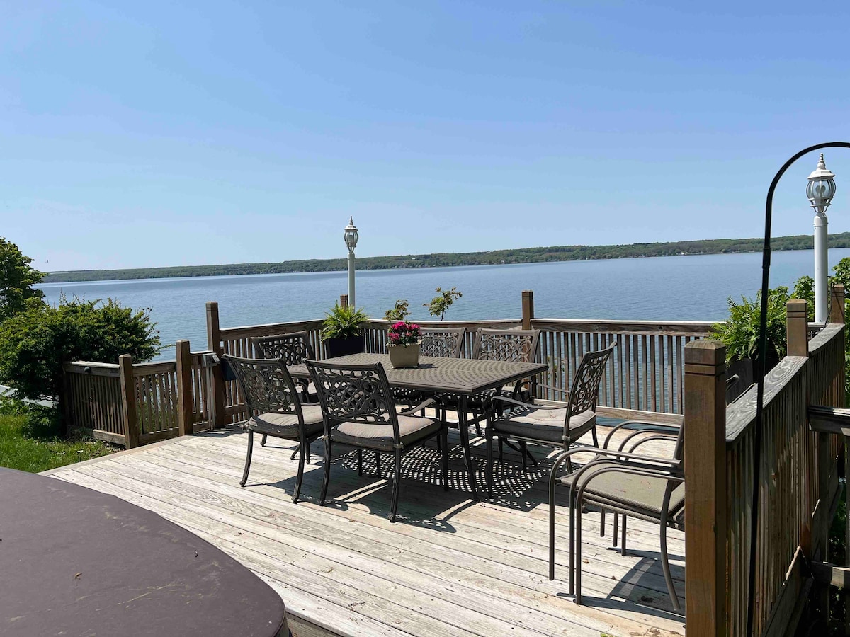 Goditi la casa sul lago perfetta con una vista da un milione di dollari!! La casa è grande e splendida... La vista sul lago è mozzafiato e i tramonti sono spettacolari... L'enorme focolare in pietra e le sedie Adirondack renderanno le serate memorabili. Spiaggia privata di 60 metri con un nuovissimo molo permanente e vasca idromassaggio! Cucina grande e ben fornita, e sala da pranzo per un massimo di 10 persone. Vicino a molte cantine, birrerie e destinazioni sulle altre Finger Lakes. Animali domestici ammessi!
