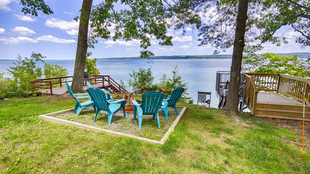 Chalet sul lago Seneca con vista mozzafiato, spiaggia e molo
