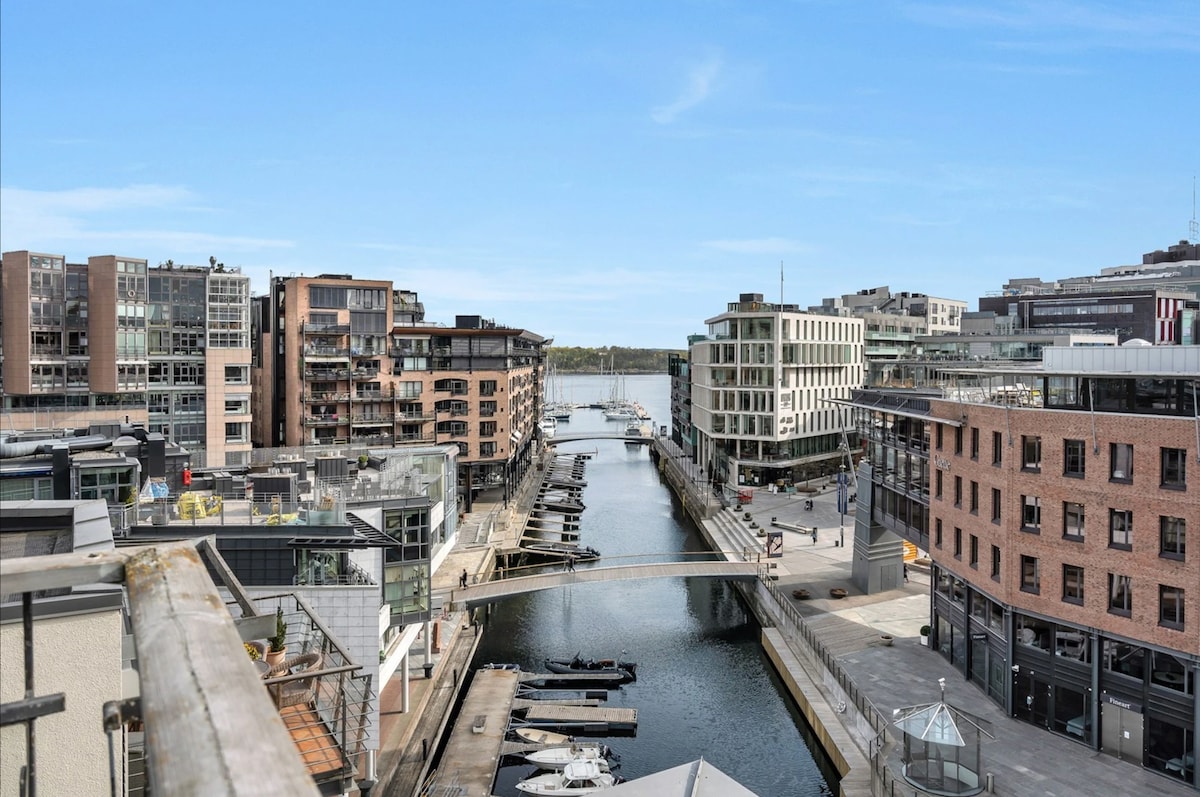Questo è un appartamento moderno e lussuoso con 2 camere da letto nel centro della città, sul lungomare, che può ospitare comodamente 5-6 persone. Il quartiere di Sørenga è uno dei più recenti di Oslo, con diversi ristoranti sul lungomare che offrono ottimo cibo in un ambiente marittimo, con vista sui punti di riferimento di Oslo come il Barcode, l'Opera House e la fortezza di Akershus. Facile accesso da e per l'aeroporto, a soli 15 minuti a piedi dalla stazione ferroviaria centrale di Oslo.