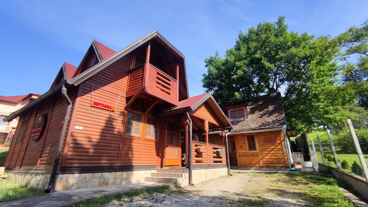 Cabin on two floors with a huge garden. Located at 1300m on a lovely mountain in National Park Tara. Here you can enjoy lots of trekking, cycling, stargazing, breathing fresh air and enjoying traditional food. There is an outdoor grill and kettle for cooking if you like. This area is very quiet usually.