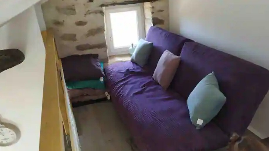 Calenzana, A 1 km dal GR20, capanna in fondo al nostro giardino, bella vista diretta sulla montagna. Al piano superiore: camera con due letti singoli e riscaldamento (per l'inverno) che si affaccia su un'amaca, al di sotto una cucina a vista. Una doccia esterna e servizi igienici a secco. Il nostro cane Thio sarà presente in giardino. Al vostro arrivo passerete attraverso la nostra casa, ma avrete la possibilità, una volta sul posto, di avere un accesso indipendente.